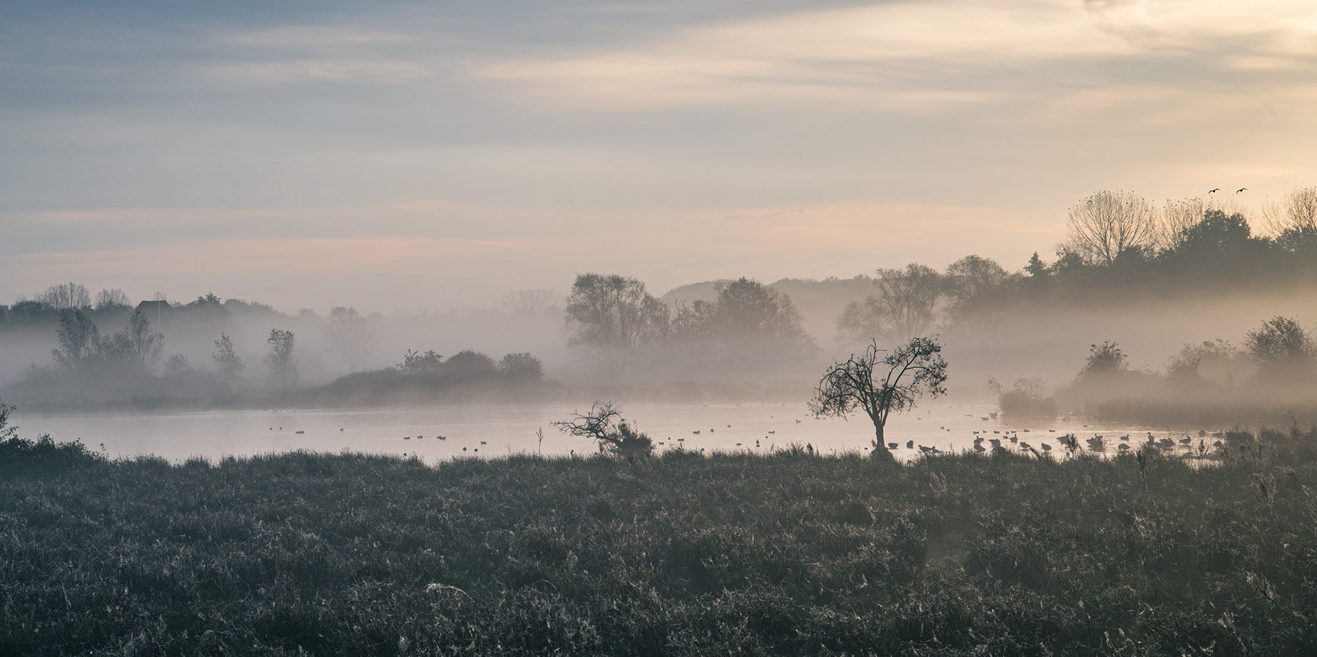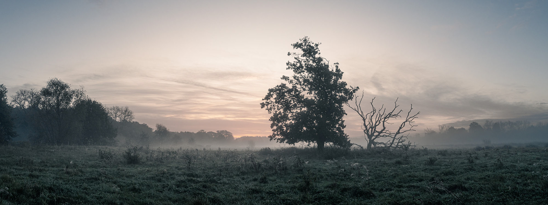 Deze reeks voert ons mee naar de vroege ochtend, naar een wereld die nog niet door de menselijke blik is opgeëist. In de mist en de stilte ontwaakt het landschap.